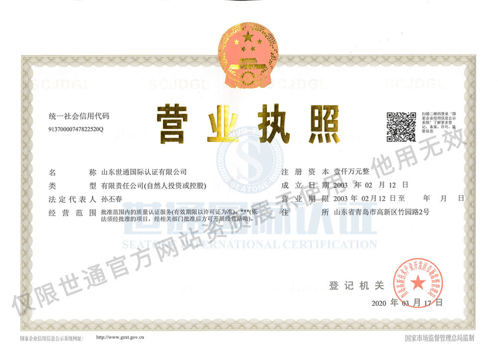 世通認證是經國家認證認可監督管理委員會批準,中國合格評定中心認可的總部位于中國青島的可直接頒發國際互認證書的權威認證機構。世通認證主要業務領域:各類ISO管理體系認證、海關AEO認證、食品安全認證、節能碳中和服務、信息安全認證、AAA信用評級、培訓服務
