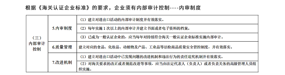 持續(xù)性符合內部審計是已經成為海關AEO認證的企業(yè),接受海關復審時的必要環(huán)節(jié)。