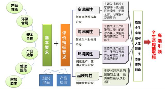 綠色產品評價標準基于全生命周期理念,對組織層面和產品層面提出了基本要求和覆蓋資源、能源、環境、品質的評價指標要求。