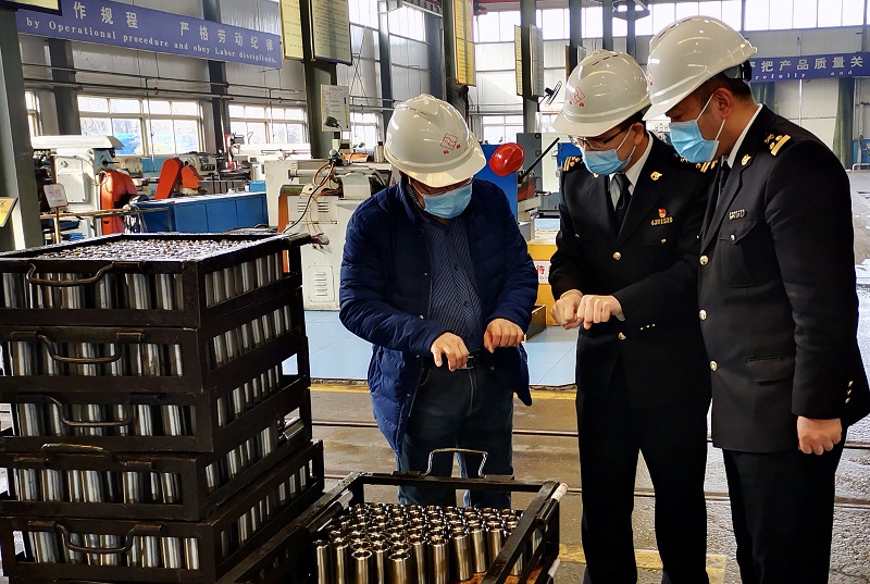 圖為:關員赴石油開采設備配件生產企業開展企業認證培育