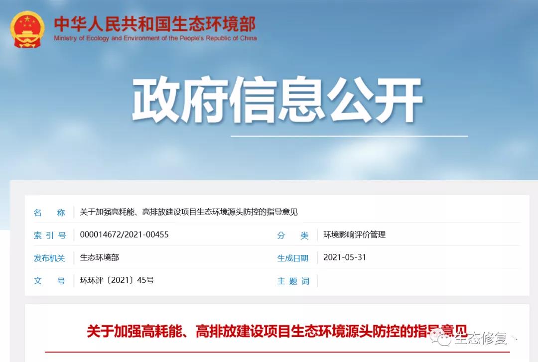 為全面落實黨的十九屆五中全會關于加快推動綠色低碳發展的決策部署,堅決遏制高耗能、高排放(以下簡稱“兩高”)項目盲目發展,推動綠色轉型和高質量發展,現就加強“兩高”項目生態環境源頭防控提出如下指導意見。