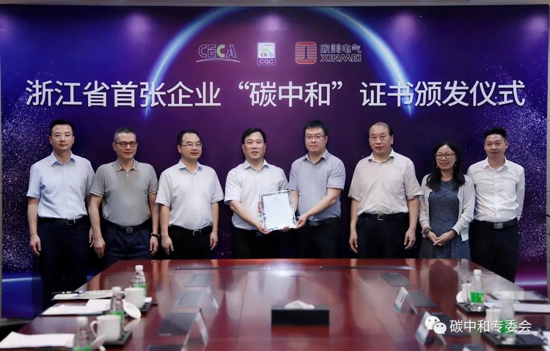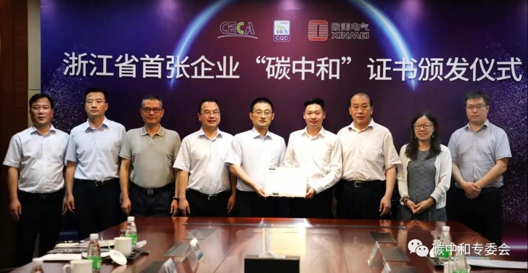 6月18日,浙江省首場“碳中和”證書頒發(fā)儀式在杭舉行。在此次證書頒發(fā)儀式上,浙江杭州市蕭山區(qū)供電公司產(chǎn)業(yè)單位欣美電氣公司獲頒浙江省首張由中國節(jié)能協(xié)會碳中和專業(yè)委員會、質(zhì)量認(rèn)證中心頒發(fā)的“碳中和”證書。
