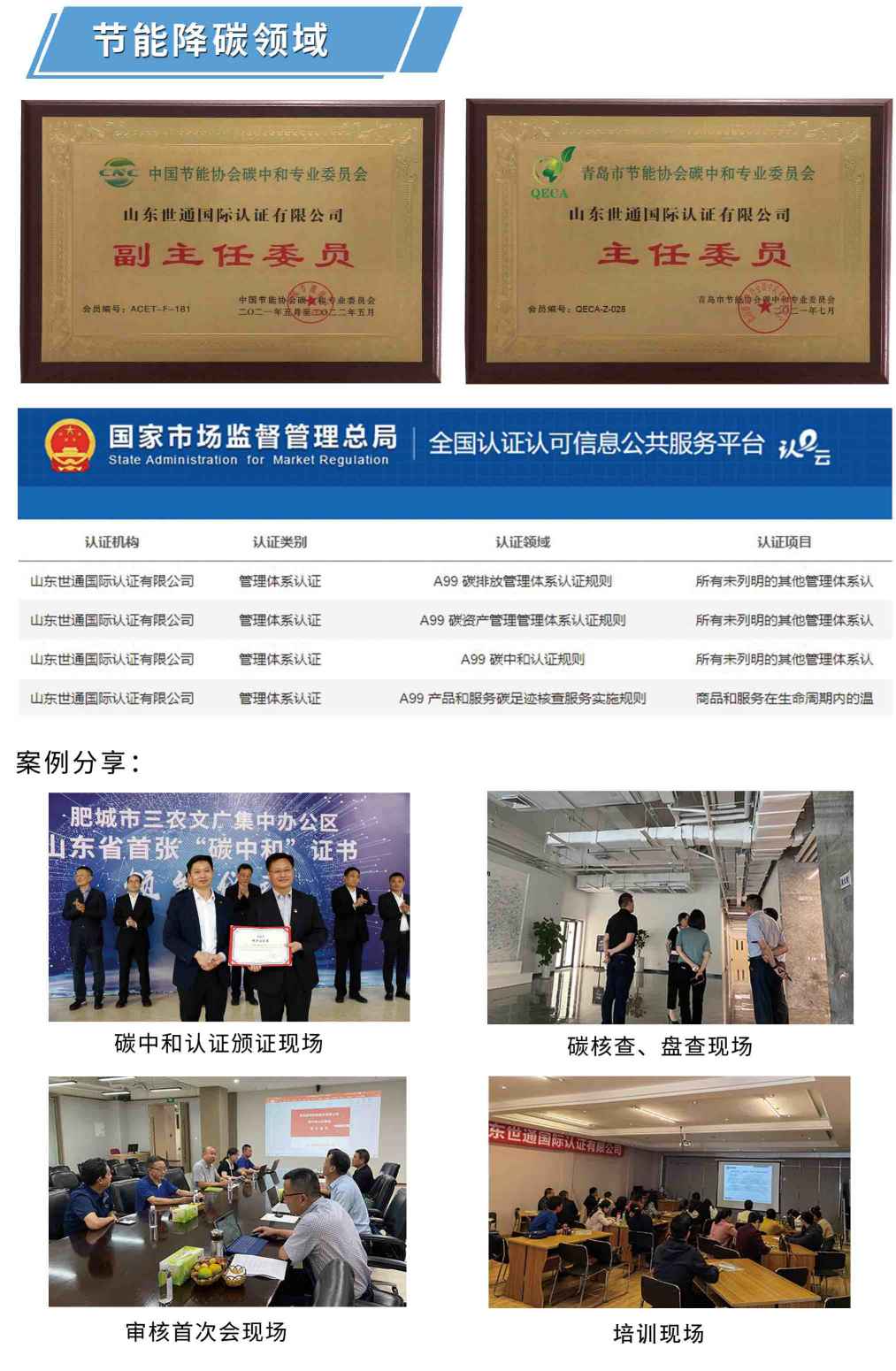 山東世通國(guó)際認(rèn)證有限公司是中國(guó)節(jié)能協(xié)會(huì)碳中和專業(yè)委員會(huì)副主任單位、青島市節(jié)能協(xié)會(huì)碳中和專業(yè)委員會(huì)主任單位、國(guó)家認(rèn)監(jiān)委CNCA備案批準(zhǔn)碳中和領(lǐng)域頒發(fā)證書的權(quán)威機(jī)構(gòu)、CCAA溫室氣體核查員注冊(cè)推薦機(jī)構(gòu)以及政府備案的節(jié)能診斷機(jī)構(gòu),有能力為各類組織在節(jié)能·碳中和方面提供一站式服務(wù):