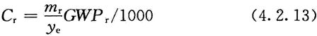 4.2.13 暖通空調系統中由于制冷劑使用而產生的溫室氣體排放,應按下式計算: