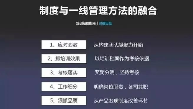 在傳統質量管理上,它指生產過程中所需遵循的規章制度。它包括:工藝指導書,標準工序指引,生產圖紙,生產計劃表,產品作業標準,檢驗標準,各種操作規程等。他們在這里的作用是能及時準確的反映產品的生產和產品質量的要求。但單一將制造車間制度完善是不夠的,我們還要把班組長的培養方法做到位: