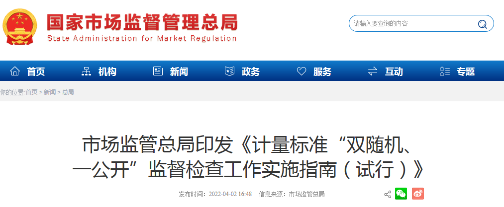近日,市場監管總局印發《計量標準“雙隨機、一公開”監督檢查工作實施指南(試行)》(以下簡稱《指南》)。