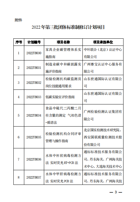 此次第三批團體標準制修訂計劃項目公布的15項團體標準項目中,有兩項標準《低碳實驗室評價指南》和《檢驗檢測機構碳監測員崗位技能通用要求》的起草單位均為山東世通國際認證有限公司。