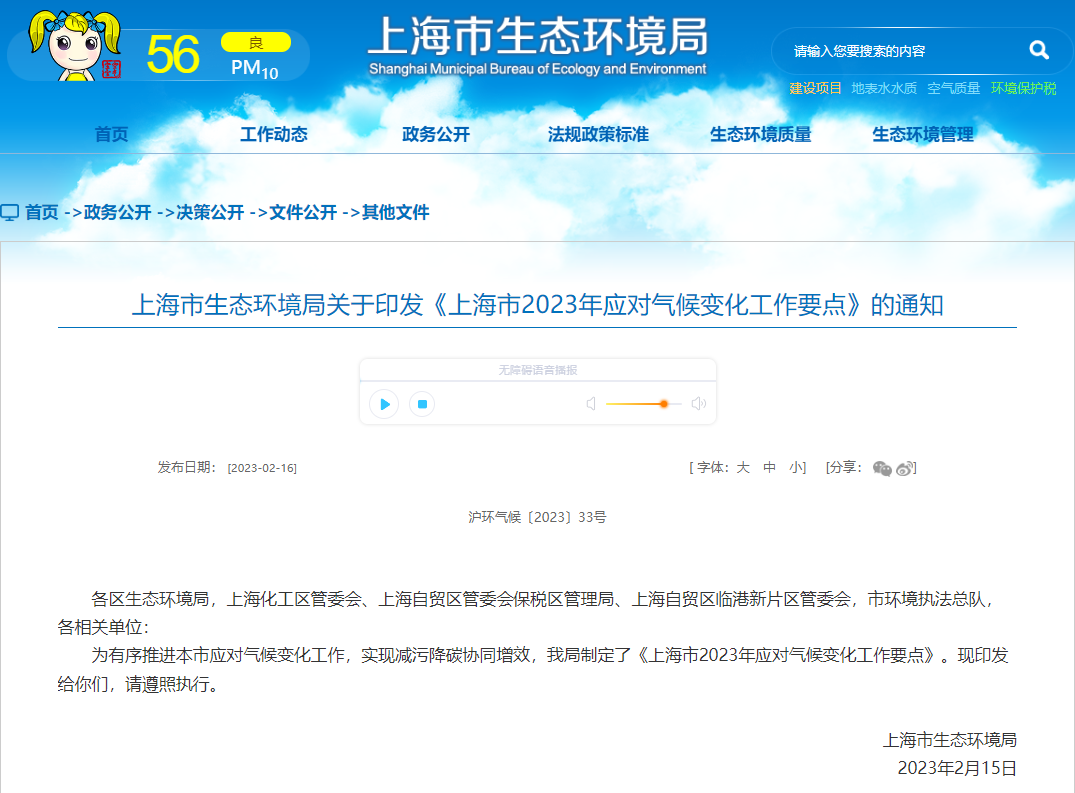 為有序推進(jìn)本市應(yīng)對(duì)氣候變化工作,實(shí)現(xiàn)減污降碳協(xié)同增效,上海市生態(tài)環(huán)境局制定了《上海市2023年應(yīng)對(duì)氣候變化工作要點(diǎn)》,全文如下。上海市2023年應(yīng)對(duì)氣候變化工作要點(diǎn) 2023年是全面貫徹黨的二十大精神的開局之年,是實(shí)施“十四五”規(guī)劃的關(guān)鍵一年。為有序推進(jìn)應(yīng)對(duì)氣候變化工作,實(shí)現(xiàn)減污降碳協(xié)同增效,促進(jìn)經(jīng)濟(jì)社會(huì)發(fā)展全面綠色轉(zhuǎn)型,特制定本工作計(jì)劃。 2023年,本市及各區(qū)碳排放強(qiáng)度穩(wěn)步下降。應(yīng)對(duì)氣候變化工作機(jī)制逐步完善,碳排放政策體系更加健全,碳排放交易市場(chǎng)不斷深化,碳排放管理能力持續(xù)提升。 1. 舉辦中國(guó)國(guó)際碳交易大會(huì)。依托部市合作機(jī)制積極組織舉辦年度中國(guó)國(guó)際碳交易大會(huì),樹立“中國(guó)碳交易”品牌,助力將上海打造成為具有國(guó)際影響力的碳交易中心、碳定價(jià)中心、碳金融中心。 2. 加快推進(jìn)全國(guó)碳排放權(quán)交易機(jī)構(gòu)設(shè)立。在生態(tài)環(huán)境部的指導(dǎo)下,加快推進(jìn)全國(guó)碳排放權(quán)交易機(jī)構(gòu)設(shè)立。 3. 制定并印發(fā)《適應(yīng)氣候變化行動(dòng)方案》。根據(jù)《國(guó)家適應(yīng)氣候變化2035年戰(zhàn)略》及生態(tài)環(huán)境部相關(guān)要求,結(jié)合本市適應(yīng)氣候變化工作基礎(chǔ)及需求,編制并印發(fā)本市《適應(yīng)氣候變化行動(dòng)方案》,為推動(dòng)本市適應(yīng)氣候變化工作提供行動(dòng)指導(dǎo)。 4. 落實(shí)碳排放強(qiáng)度下降目標(biāo)責(zé)任。圍繞國(guó)家下達(dá)本市的“十四五”碳排放強(qiáng)度下降目標(biāo),結(jié)合上海實(shí)際,科學(xué)研究制定分解方案,并加強(qiáng)跟蹤分析調(diào)度,逐步推動(dòng)建立評(píng)估機(jī)制。 5. 逐步健全本市碳普惠體系。組建碳普惠管理中心與運(yùn)營(yíng)中心,搭建碳普惠系統(tǒng)平臺(tái)。研究出臺(tái)“1+4”配套政策,包括上海碳普惠體系管理辦法以及方法學(xué)指南、項(xiàng)目和場(chǎng)景管理、積分管理等細(xì)則。開發(fā)能源、交通等領(lǐng)域項(xiàng)目場(chǎng)景,建立試點(diǎn)示范,將碳普惠核證減排量納入本市碳市場(chǎng)補(bǔ)充抵消機(jī)制,初步實(shí)現(xiàn)與本市碳市場(chǎng)閉環(huán)運(yùn)行。加強(qiáng)區(qū)域協(xié)作,積極推動(dòng)長(zhǎng)三角區(qū)域碳普惠聯(lián)建工作。 6. 夯實(shí)碳排放管理法律基礎(chǔ)。進(jìn)一步規(guī)范本市碳排放相關(guān)管理活動(dòng),研究完善涉碳相關(guān)法律制度體系。在前期調(diào)研和立法后評(píng)估的基礎(chǔ)上,積極推進(jìn)《上海碳排放管理試行辦法》修訂工作。 7. 強(qiáng)化減污降碳協(xié)同增效。根據(jù)《上海市減污降碳協(xié)同增效實(shí)施方案》(滬環(huán)氣候〔2023〕12號(hào))研究制定配套細(xì)化任務(wù)清單,明確責(zé)任分工并建立定期跟蹤調(diào)度機(jī)制,推動(dòng)減污降碳協(xié)同工作落地落實(shí)。 8. 加強(qiáng)全國(guó)碳市場(chǎng)數(shù)據(jù)質(zhì)量管理。成立市生態(tài)環(huán)境局全國(guó)碳市場(chǎng)數(shù)據(jù)質(zhì)量管理工作專班,建立健全事前事中事后全過(guò)程管理機(jī)制,聯(lián)合各相關(guān)部門、各區(qū)局,共同做好數(shù)據(jù)填報(bào)督促、定期核實(shí)和隨機(jī)抽查工作。做好本市2022年度已納入及擬納入全國(guó)碳市場(chǎng)重點(diǎn)排放單位數(shù)據(jù)報(bào)送和核查等工作。完成發(fā)電行業(yè)重點(diǎn)排放單位的配額分配,并監(jiān)督其按時(shí)完成2021—2022年度的清繳履約,確保按時(shí)完成第二個(gè)履約周期各項(xiàng)工作。 9. 深化本市碳交易市場(chǎng)建設(shè)。探索擴(kuò)大本市納管行業(yè)范圍,探索優(yōu)化配額分配方式,制定納入碳排放配額管理單位名單及配額分配方案,督促納管企業(yè)提交碳排放監(jiān)測(cè)計(jì)劃、碳排放報(bào)告,按時(shí)清繳履約。加強(qiáng)對(duì)第三方核查機(jī)構(gòu)考核評(píng)估結(jié)果的應(yīng)用。加快碳金融創(chuàng)新,出臺(tái)回購(gòu)交易業(yè)務(wù)規(guī)則,并爭(zhēng)取回購(gòu)業(yè)務(wù)落地。深化和完善碳中和指數(shù),編制碳指數(shù)和高碳轉(zhuǎn)型指數(shù)。加強(qiáng)碳市場(chǎng)信息披露。根據(jù)國(guó)家要求,做好現(xiàn)有試點(diǎn)碳市場(chǎng)和全國(guó)碳市場(chǎng)的銜接。 10. 積極培育碳排放管理相關(guān)第三方機(jī)構(gòu)。依托碳交易、碳普惠等,充分發(fā)揮產(chǎn)業(yè)協(xié)會(huì)力量,積極培育碳排放管理相關(guān)第三方機(jī)構(gòu),引導(dǎo)碳相關(guān)服務(wù)市場(chǎng)蓬勃健康有序發(fā)展。 11. 推進(jìn)全市及區(qū)級(jí)溫室氣體清單編制。完成本市2021年溫室氣體清單編制工作。推動(dòng)各區(qū)全面完成2022年溫室氣體清單編制工作,做好數(shù)據(jù)質(zhì)量審核把關(guān)。強(qiáng)化清單應(yīng)用,夯實(shí)數(shù)據(jù)基礎(chǔ),全面提升碳排放精細(xì)化管理水平。 12. 推動(dòng)氣候投融資試點(diǎn)建設(shè)。繼續(xù)支持指導(dǎo)浦東新區(qū)開展