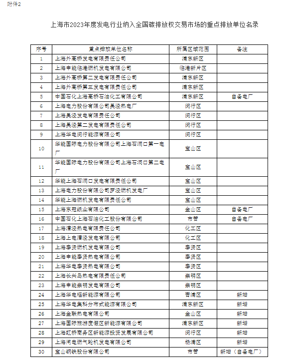 根據《通知》要求,本市2023年度發電行業納入全國碳排放權交易市場的年度重點排放單位名錄詳見附件2。我局根據確定的名錄,向管理平臺申請開立重點排放單位賬戶,并將登錄名及初始密碼告知重點排放單位。