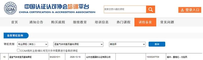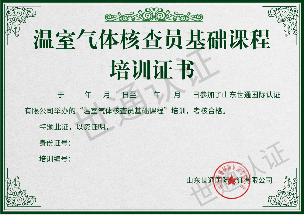 為助力中國碳達峰目標和碳中和愿景的實現,規范溫室氣體核查員注冊工作,中國認證認可協會(CCAA)制定了《溫室氣體核查員注冊準則》。在新的國際國內政治經濟形勢發生巨大變化的局勢下,我國溫室氣體排放控制與管理政策目標定位逐漸清晰,通過利用市場機制控制溫室氣體排放,推動綠色低碳發展,提升我國生態文明建設水平。溫室氣體控制與管理的能力要求的基礎是對企業、機構的人員能力水平的評價。山東世通國際認證有限公司,于 2021 年 10 月 18 日通過了CCAA《溫室氣體核查員基礎課程》備案工作,課程備案號:BA2021011,致力于培養儲備一批碳中和領域專業人才隊伍,推進碳領域核查、認證等相關工作。
