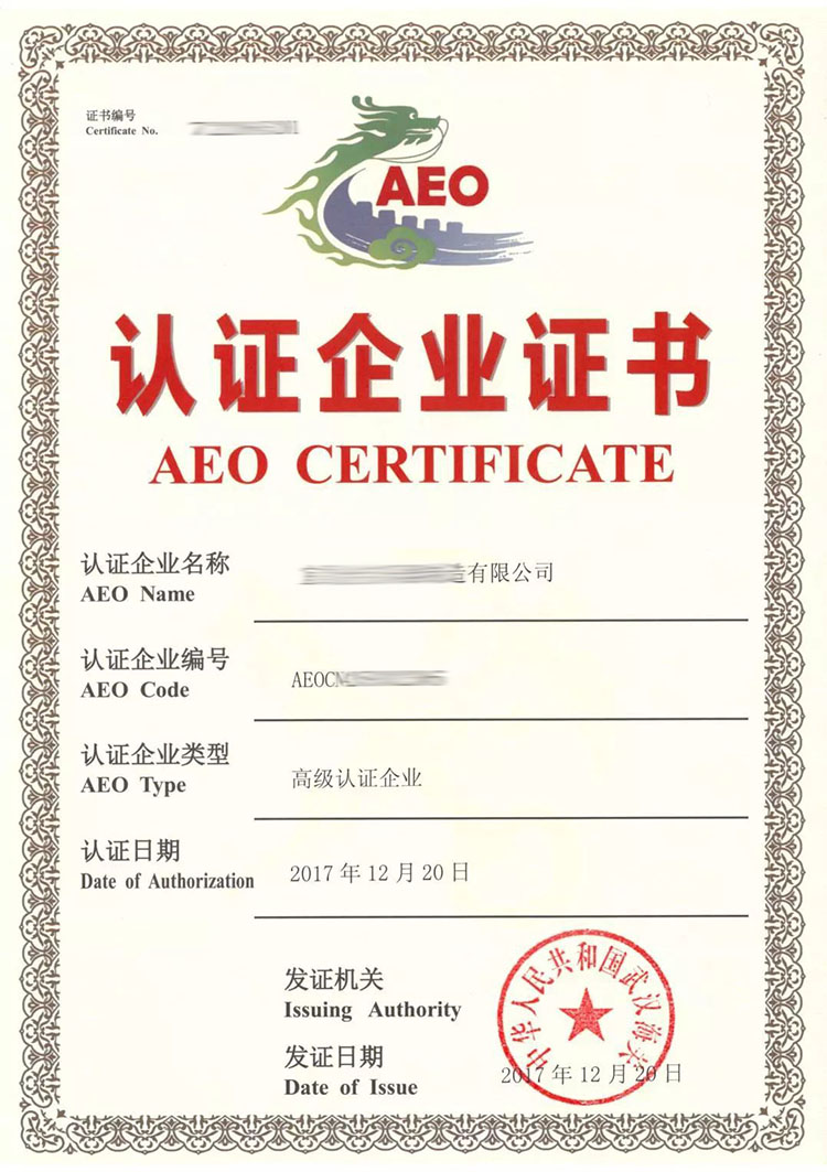 【海關(guān)AEO高級(jí)認(rèn)證證書】