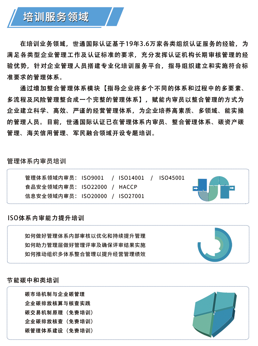 ISO 組織已于 2018 年 9 月 15 日全面使用新版ISO9001:2015 標準。為適應(yīng)組織質(zhì)量管理工作的需要,推動三大管理標準在組織的貫徹與實施,指導(dǎo)組織建立和實施符合標準要求的質(zhì)量、環(huán)境、職業(yè)健康安全管理體系,培養(yǎng)高素質(zhì)的國家注冊審核人員,世通認證于 2021 年11 月在煙臺市、臨沂市、青島市舉辦新版質(zhì)量、環(huán)境、職業(yè)健康安全管理體系整合內(nèi)審員培訓(xùn)”。