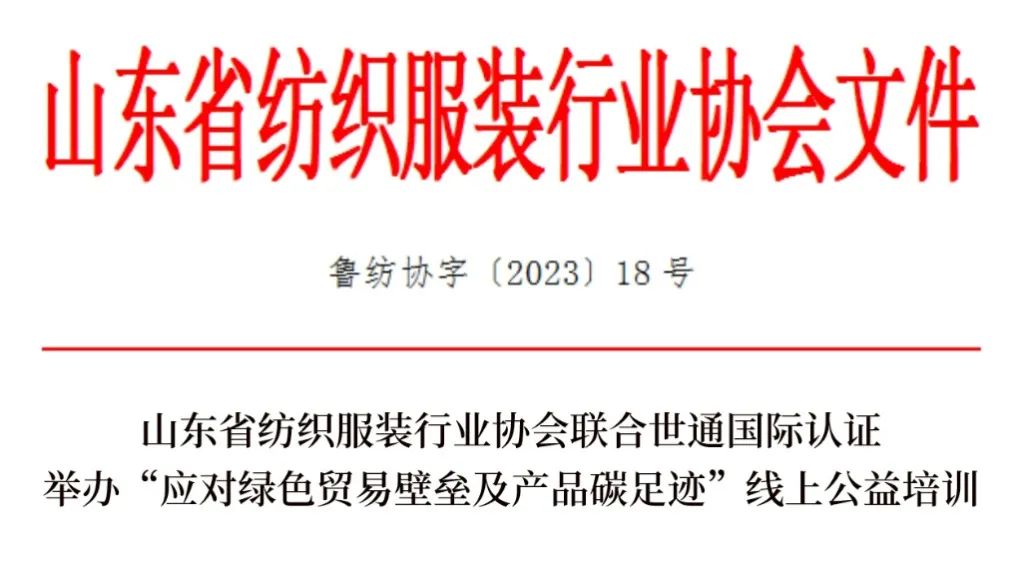 易壁壘,山東省紡織服裝行業協會將舉辦應對綠色貿易壁壘及產品碳足跡培訓。通過分析產品碳足跡及核算,能 有效幫助企業識別和改進能耗高的生產環節,降低成本。同 時獲得產品的碳足跡認證與報告已經成為綠色工廠評選活 動的重要環節,也是提升企業聲譽、增強產品國際競爭力的有效方式。