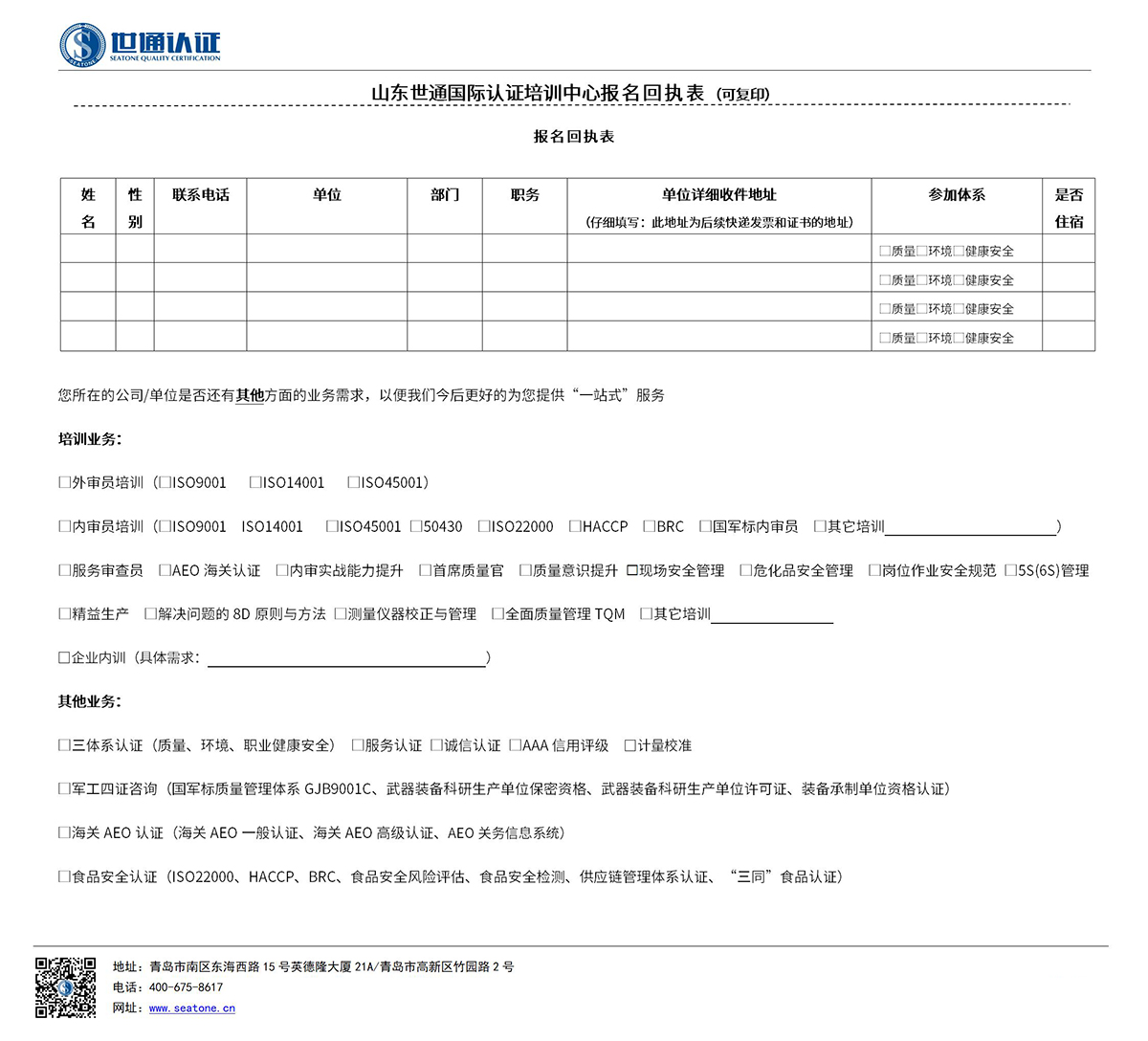 2、培訓課程結束后進行網上考試,合格者獲得由山東世通國際認證有限公司頒發的內部審核員培訓合格證書。